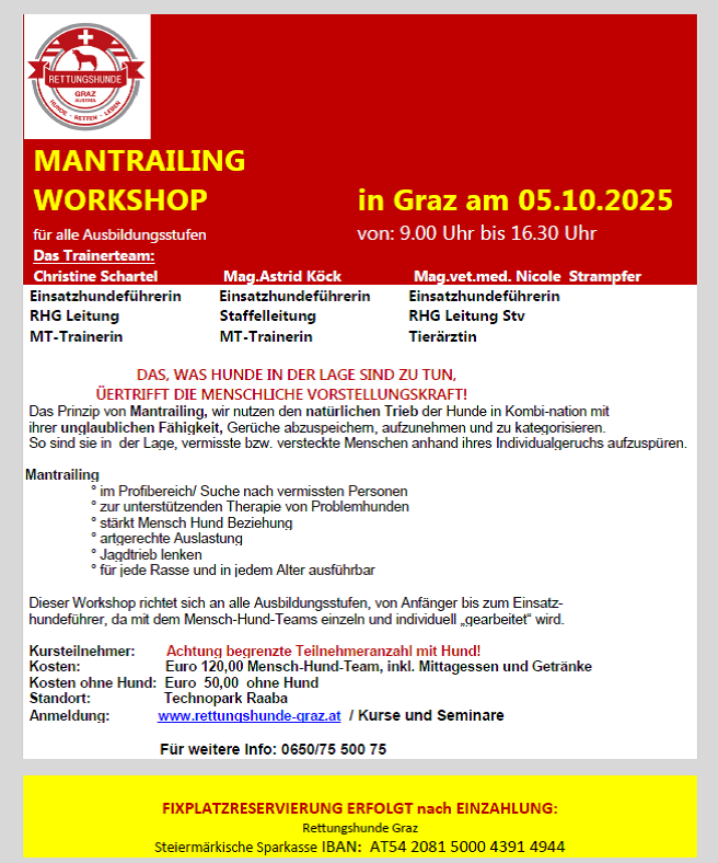 Termin für den nächsten ERSTE HILFE KURS AM HUND folgt!